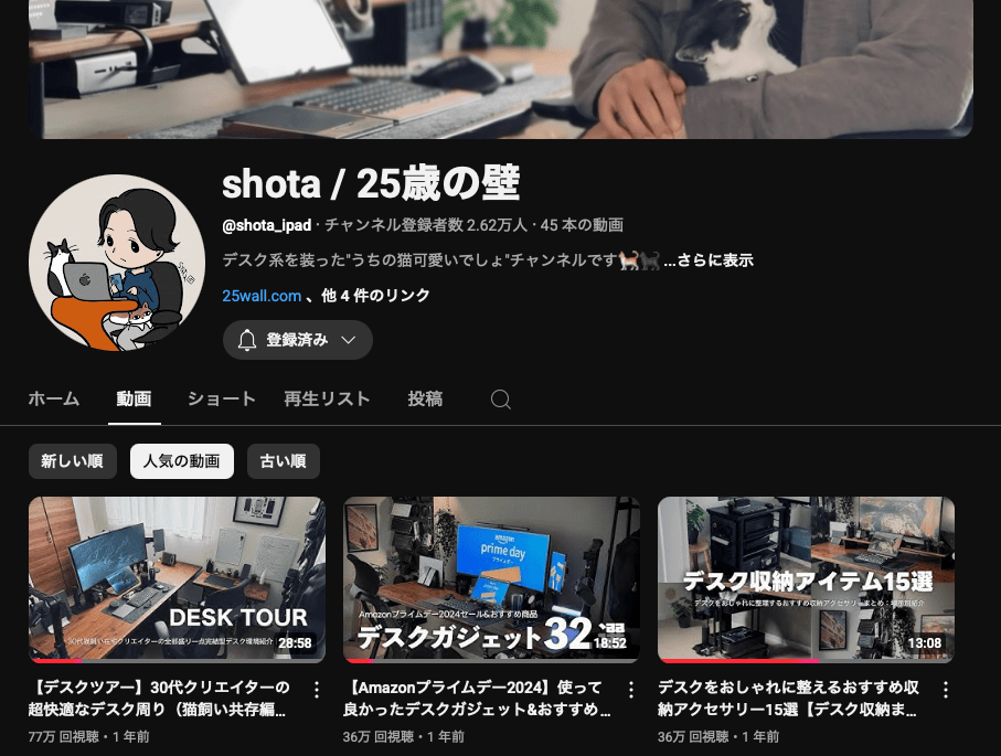 YouTubeチャンネルでは、iPadの活用方法やおすすめアクセサリーを紹介しつつ、iPhoneやApple Watch、デスク周りのガジェットについて発信しています。