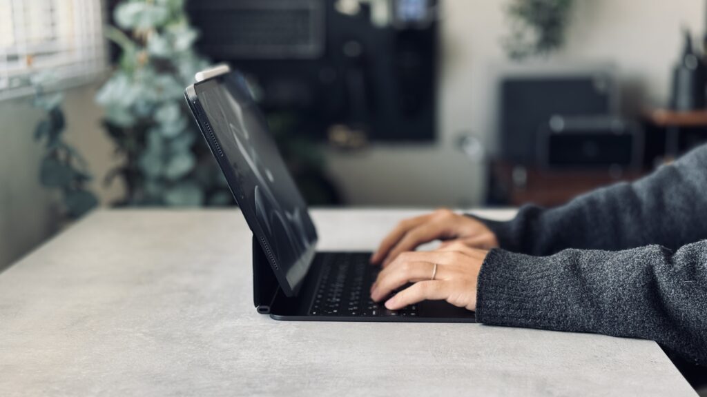 Macをデスクにセットして使ってるとき、ちょっとした文章を書きたいけどデスクでの作業じゃない、でもMacを取り外すのはめんどくさい、って時にブッ刺さるのがiPadで。がっつりコンテンツ制作のど真ん中では使わないけど、そこに至るまでの形にするって部分では非常に優秀な1台です。