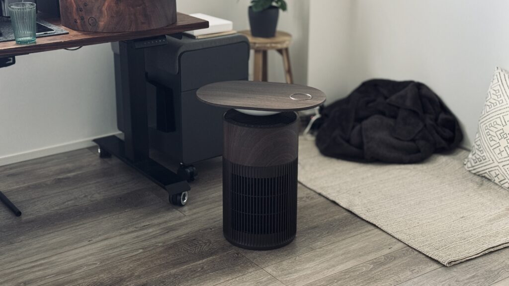 こちらもギフティングでいただいたSwitchBotの空気清浄機のテーブルタイプ。新製品としてウォールナットカラーが出たので先行でいただいて使ってました。