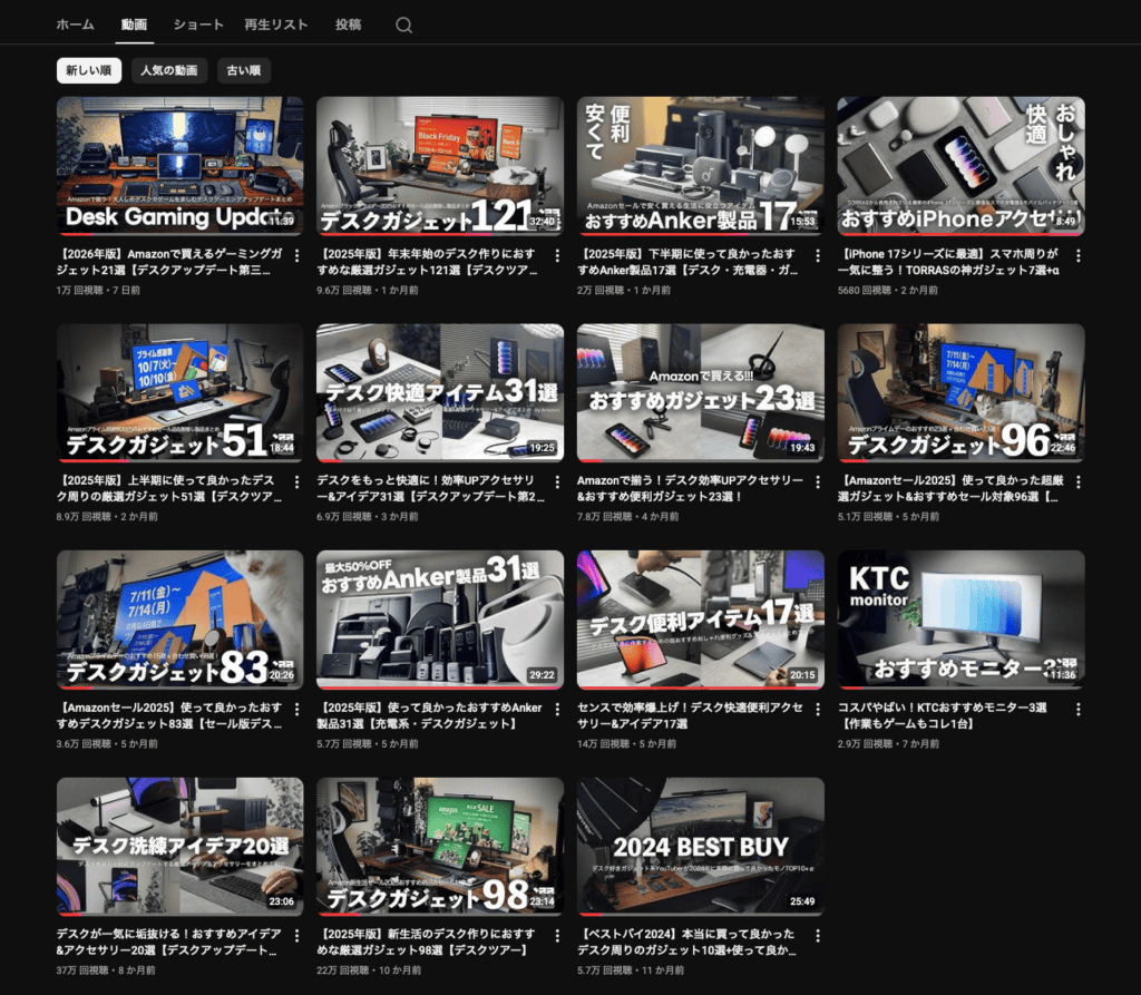 昨年伸びた「デスク収納アクセサリー」の成功を踏まえ、それを踏襲しつつ進化させた動画になりました。よくやったぞ自分。2024年のデスクツアーに続くメガヒット、かつハイクオリティ動画になったなぁと思います。最高。